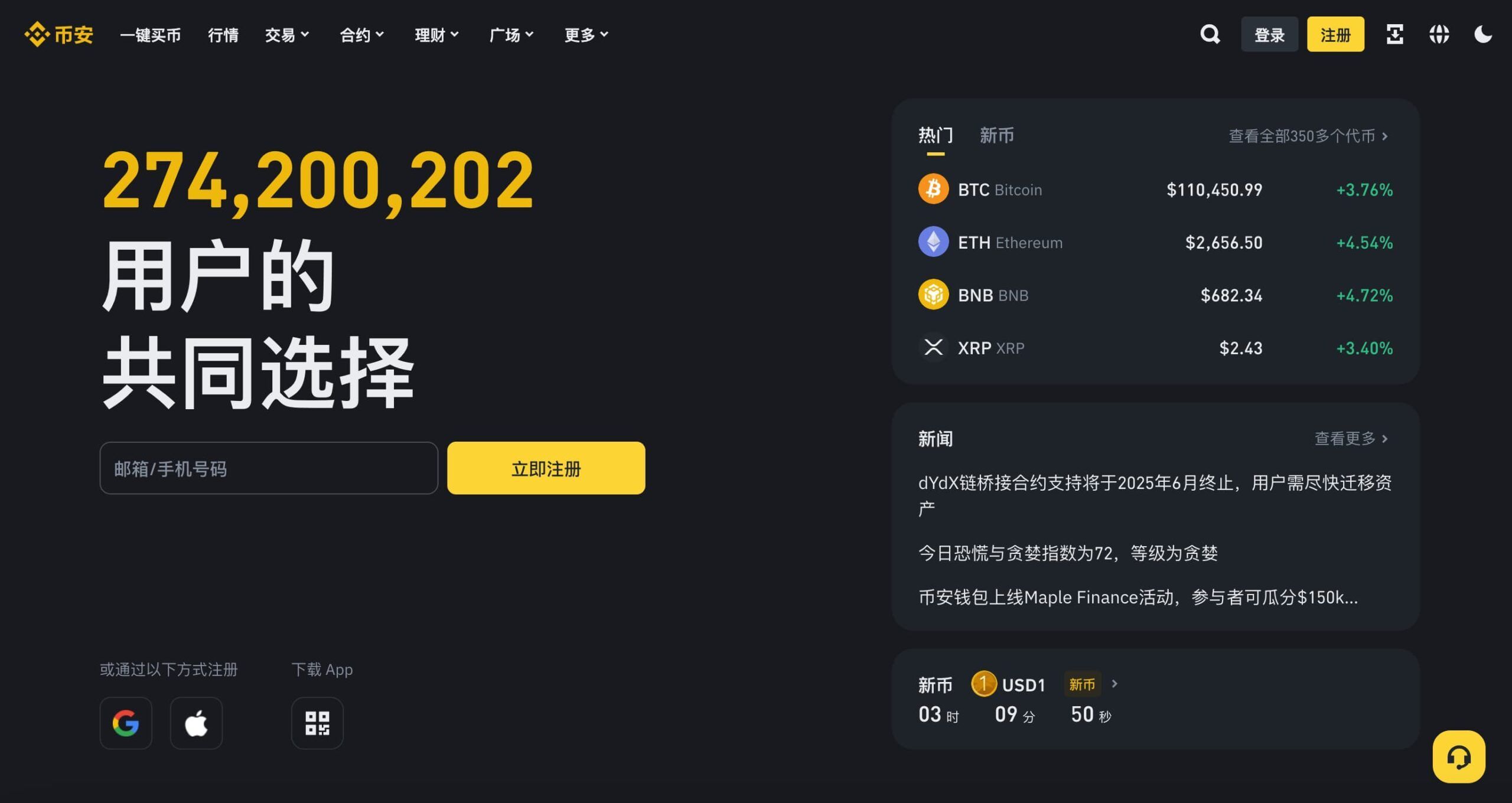 如果你还没有注册币安交易所,可以通过下文的注册链接和APP下载地址,结合视频教程,自行注册。